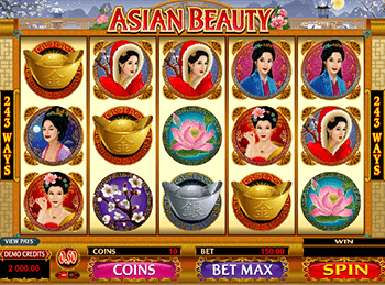 Игровой аппарат Азиатская Красота состоит из пяти катушек. Здесь нет стандартных линий платежа. Выигрышные последовательности образуются в соседних колонках, всего предусмотрено 243 способа составления цепочек. Ставка принимается сразу на спин и всегда кратна 30-ти. На кон можно поставить суммы не более 150 долларов. Играть в Вулкан игровой автомат Asian Beauty не только выгодно, но и восхитительно.